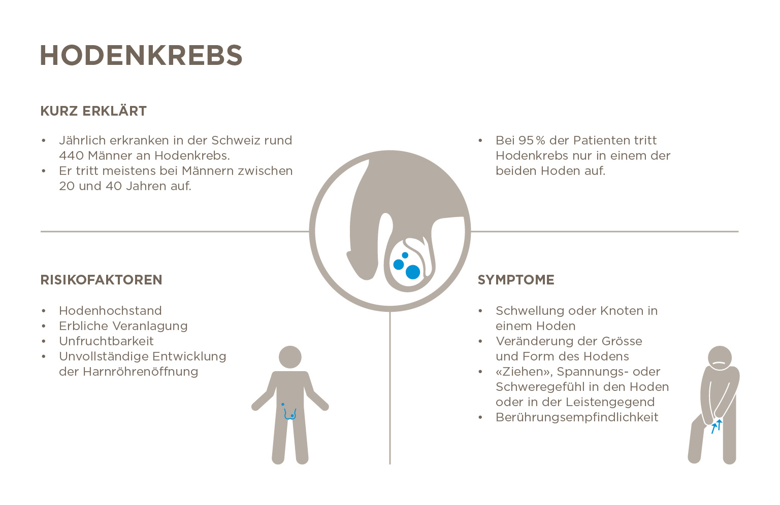 Darüber hinaus wird es empfohlen, den verbliebenen Hoden regelmässig selbst abzutasten, um mögliche Veränderungen rechtzeitig zu erkennen.
