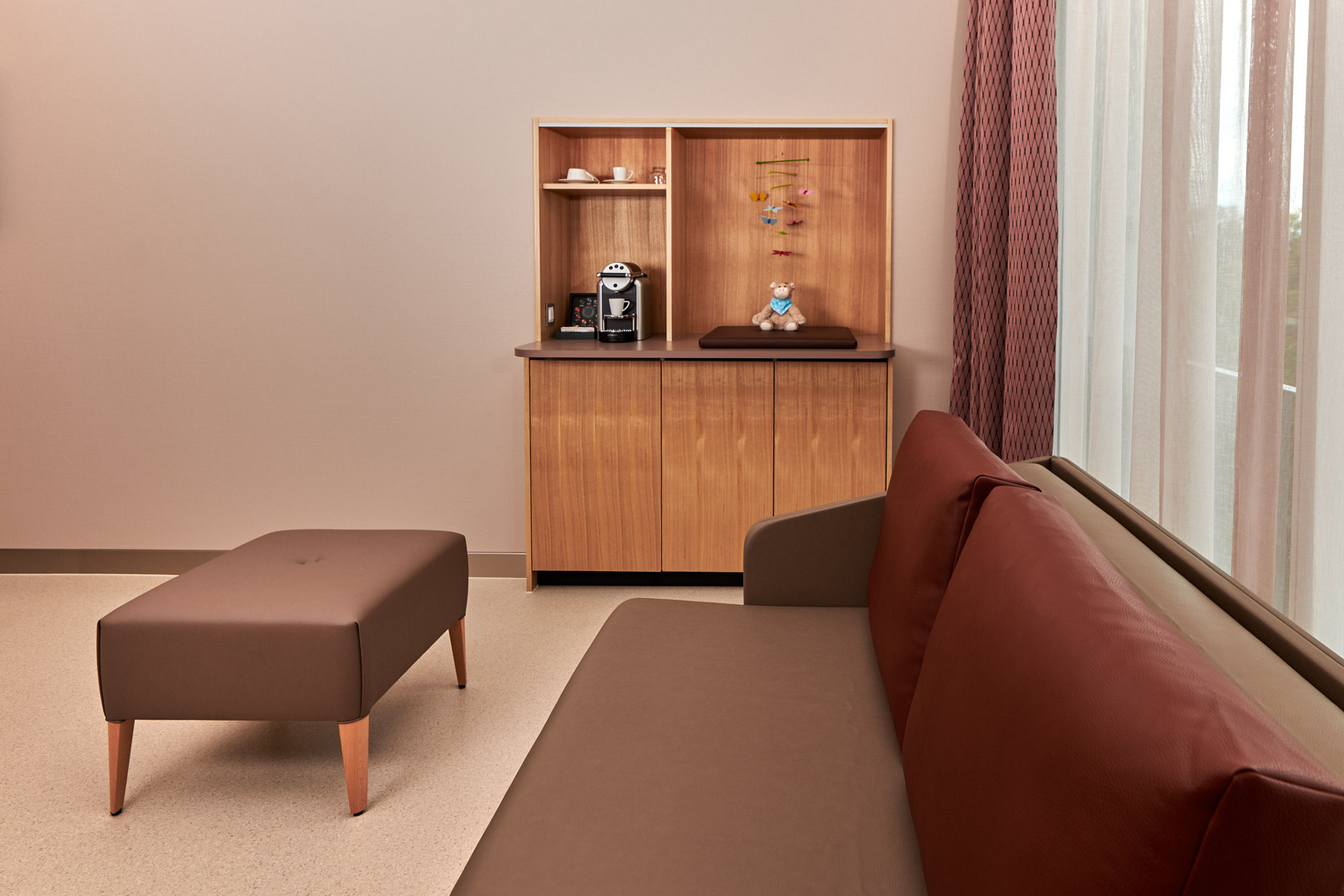 Auf unserer Maternité bieten wir privatversicherten Patientinnen ein grosszügiges Einzelzimmer. Es eignet sich optimal für Familien, die gerne gemeinsam in den neuen Lebensabschnitt starten möchten. Eine vorgängige Anmeldung ist nicht erforderlich.