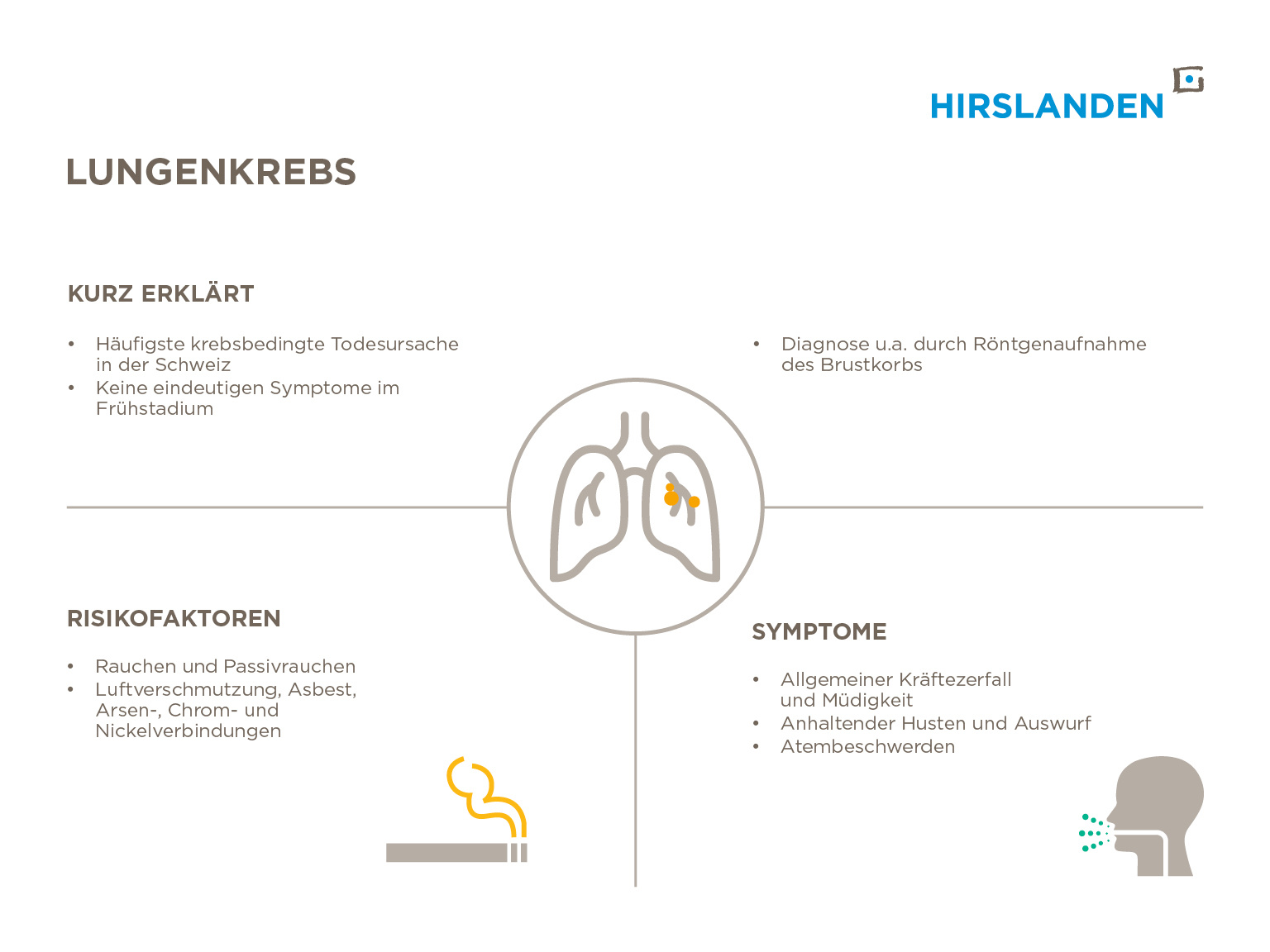 Länger andauernde Beschwerden der Atemwege (über 4 Wochen) sind ein Warnzeichen und sollten unbedingt abgeklärt werden. Dazu gehören anhaltender Husten, Auswurf, Atemnot, Heiserkeit und Schmerzen im Brustkorb.