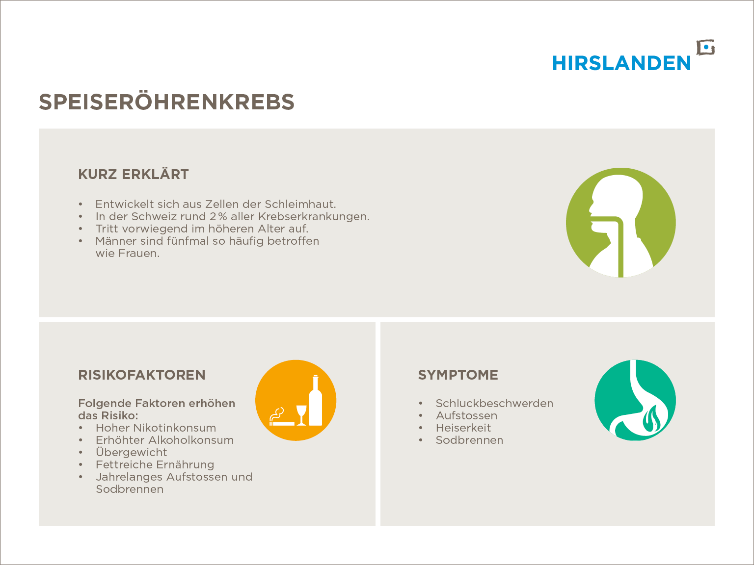 Schluckbeschwerden können erste Anzeichen von einem Speiseröhrenkrebs sein. Anfänglich machen sich die Schluckbeschwerden nur beim Schlucken von fester Nahrung bemerkbar, später auch beim Schlucken von Flüssigkeiten. Ein Speiseröhrenkrebs kann sich aber auch durch Beschwerden wie Schmerzen beim Schlucken, Sodbrennen oder Heiserkeit bemerkbar machen.