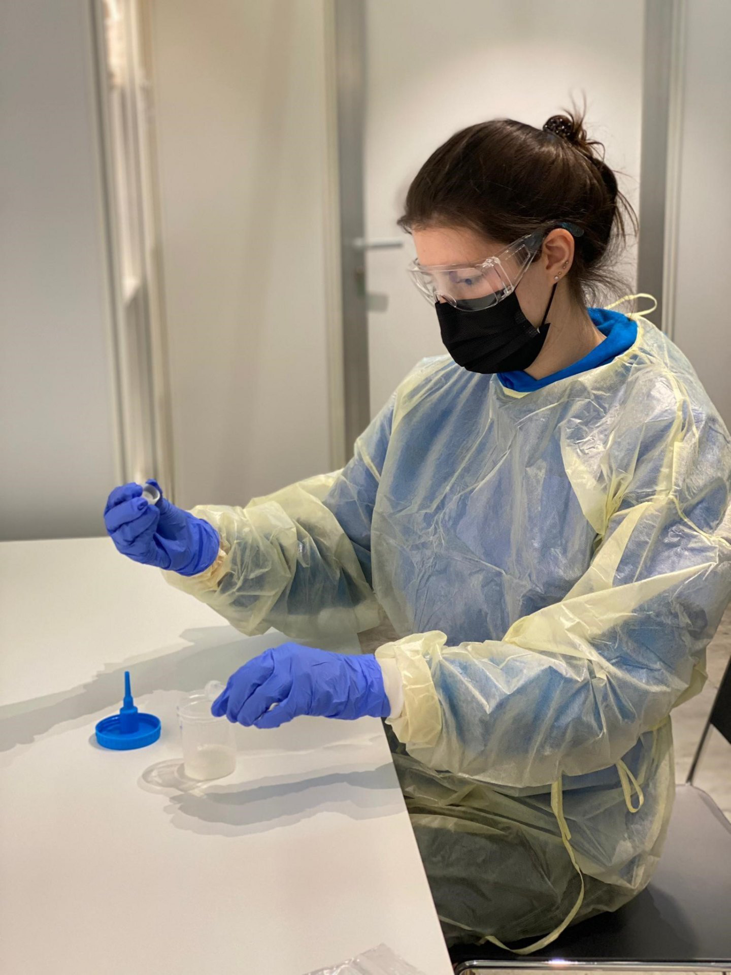 Daher wurde im grössten Impfzentrum des Kantons jetzt ein TOGETHER WE TEST Test-Corner eingerichtet. «Die Mitarbeitenden können dort noch vor der Arbeit ihre Speichelproben abgeben. Die Testkits haben sie zuvor mit nach Hause bekommen, da die Proben am besten morgens vor dem Frühstück und Zähneputzen gemacht werden», so Nicol. «Im Idealfall testet man sich gleich nach dem Aufstehen.» Wer seine Probe abgegeben hat, bekommt gleich das Testkit fürs nächste Mal mit.