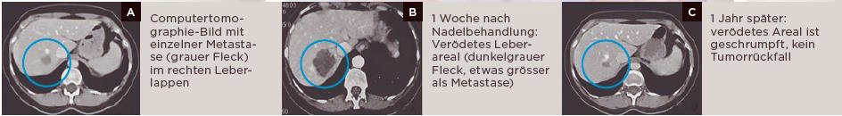 Lebertumoren können auch mit einer Nadeltechnik verödet werden. Bei diesem Verfahren erzeugen Radiofrequenzen oder Mikrowellen hohe örtliche Hitze. Die Methode ist für nicht oberflächlich gelegene Lebertumoren mit einer Grösse von bis zu drei Zentimetern geeignet. Sie wird vom Autor und seinem Team seit 15 Jahren angewandt und stetig weiterentwickelt. Die Vorteile dieses Verfahrens liegen darin, dass weniger normales Lebergewebe verloren geht als bei der Leberteilentfernung. Der Eingriff kann zudem ohne Bauchschnitt durchgeführt werden und ist für Patienten folglich weniger belastend.