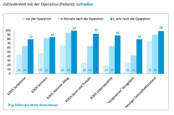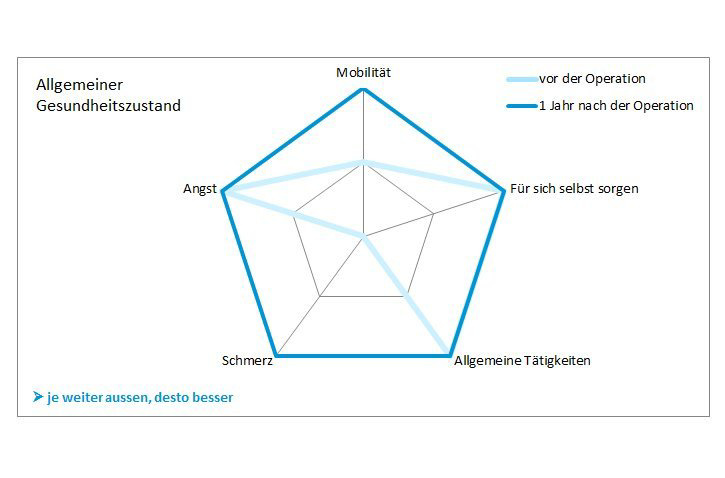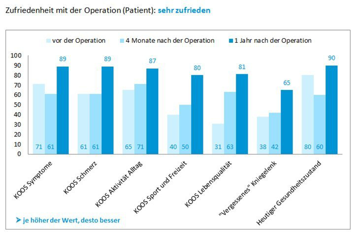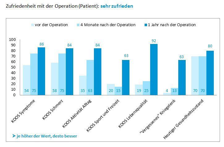 Später können wir herausfiltern, ob es anhand der Antworten einen Unterschied zwischen unzufriedenen und zufriedenen Patienten gibt. Vielleicht ist eher die eingeschränkte Beugung ein Problem? Oder es unterscheiden sich die Männer von Frauen oder die schlanken Patienten von den korpulenteren? Solche Punkte kann man später herausziehen und auswerten.