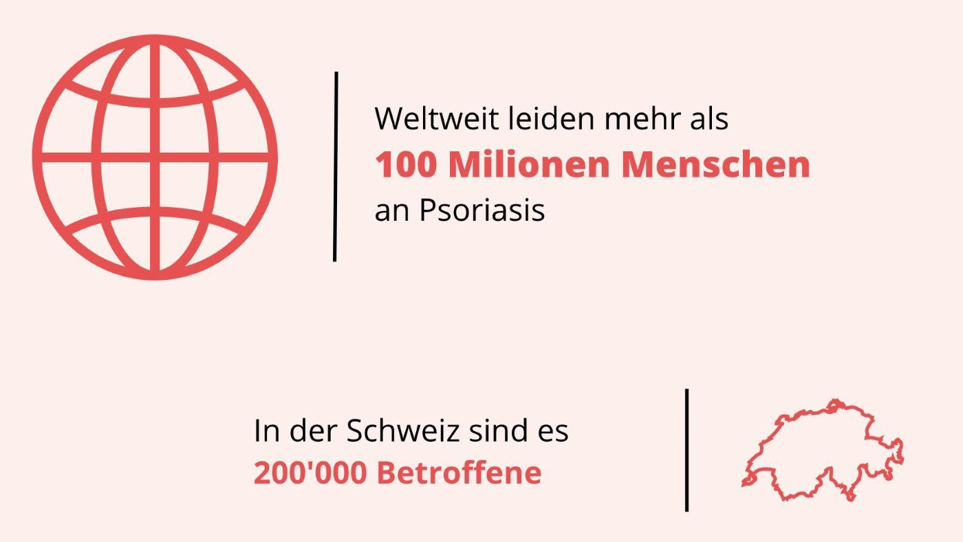Psoriasis, auch Schuppenflechte genannt, ist eine chronische entzündliche Hauterkrankung, die durch das überaktive Immunsystem einer Person verursacht wird. Dieses regt die Vermehrung der Zellen in der Oberhaut an, ohne dass der Körper Zeit hat, die alten Hautzellen auf natürliche Weise abzuschilfern. Die neuen Hautzellen drücken die alten Hautzellen an die Oberfläche der Haut, wodurch sich Plaques bilden. Plaques sind die von der Psoriasis befallenen roten und schuppenden Hautstellen, die erhaben sind (daher auch der Name «Schuppenflechte»). Der Hautbefall ist also lediglich die häufigste Manifestation der chronischen Krankheit und beruht nicht auf Erregern, die von Haut zu Haut übertragen werden.