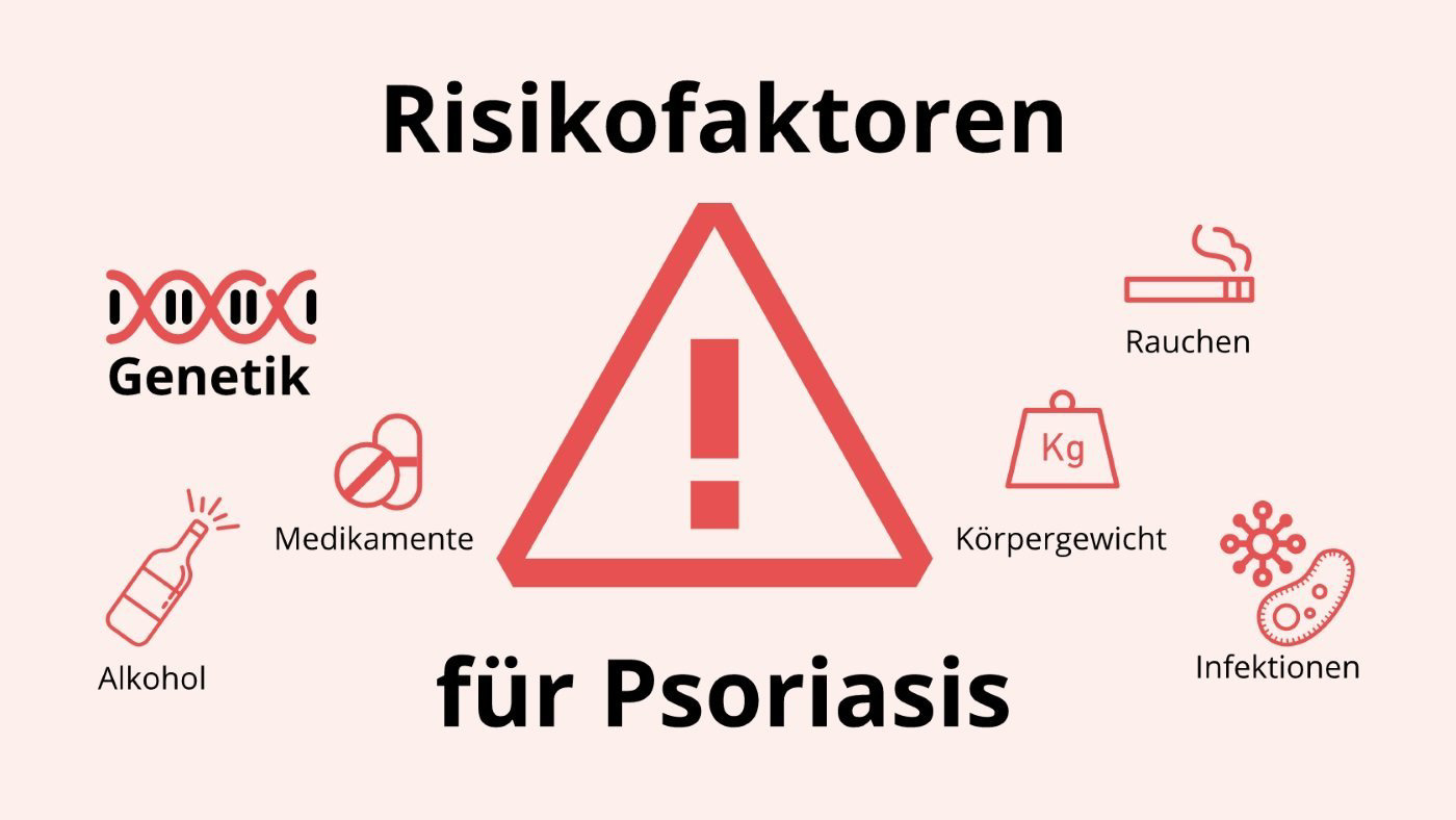 Fakt #1: Die Psoriasis fährt Abwehrmechanismen der Haut hoch. Es wird dabei ein Überschuss an antimikrobiellen Peptiden (gegen Bakterien wirkende Eiweisse) in der betroffenen Haut produziert. Deshalb weisen Personen mit Psoriasis weniger Hautinfektionen z. B. aufgrund von Bakterien auf. Anderseits können Bakterien, Medikamente, Alkoholüberkonsum bei genetisch veranlagten Personen Psoriasis auslösen oder verschlechtern (Abb. 2).