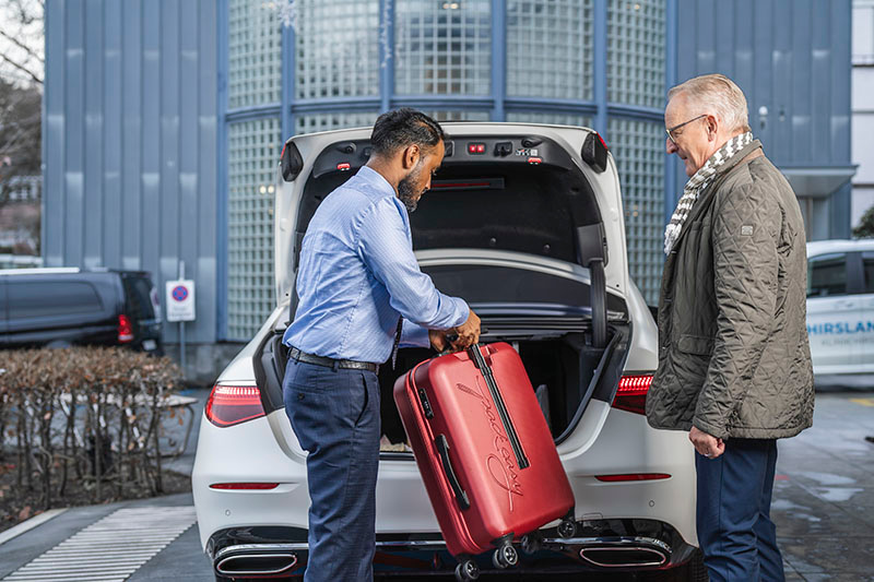 - Regulärer Transport für Privatversicherte Patientinnen und Patienten: Die Heimfahrt ist bis zu einer Distanz von 20 Kilometer kostenlos. Für weitere Distanzen erhalten Sie gerne Auskunft unter der T +41 44 387 34 95 oder per Email vashi.balakumar@hirslanden.ch.