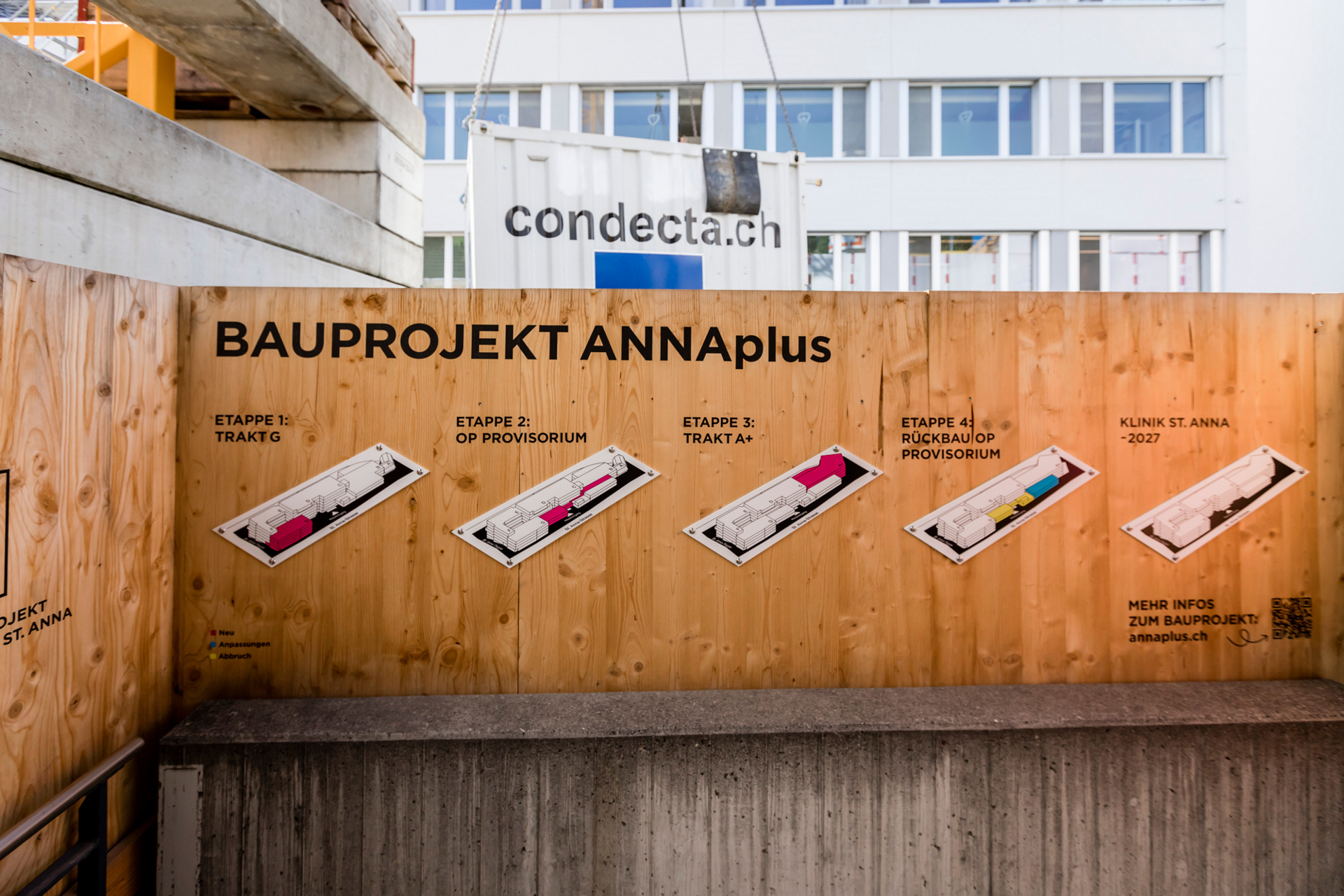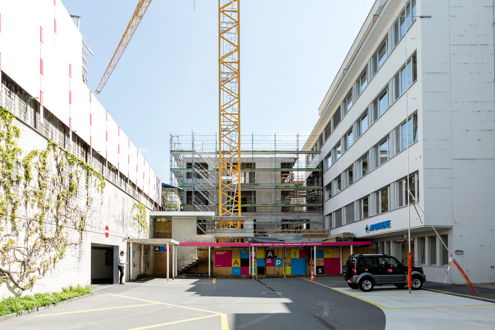 Ab 2024 wird die Entstehung des Trakts Z über dem Haupteingang zur Klinik St. Anna dokumentiert, an dem schon seit Sommer 2023 gearbeitet wird. In diesem temporären Trakt, den so genannten Hof-Provisorien, werden übergangsweise die Operationssäle der Klinik einquartiert, bevor die Trakte A und B der Klinik rückgebaut werden. Damit kann der Operationsbetrieb praktisch während der gesamten Bauzeit uneingeschränkt aufrechterhalten werden.