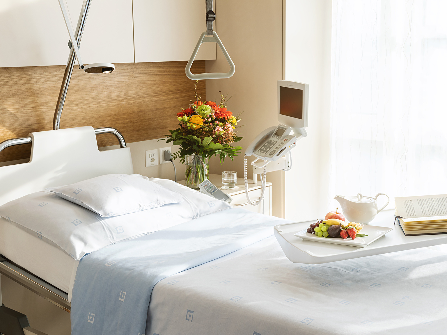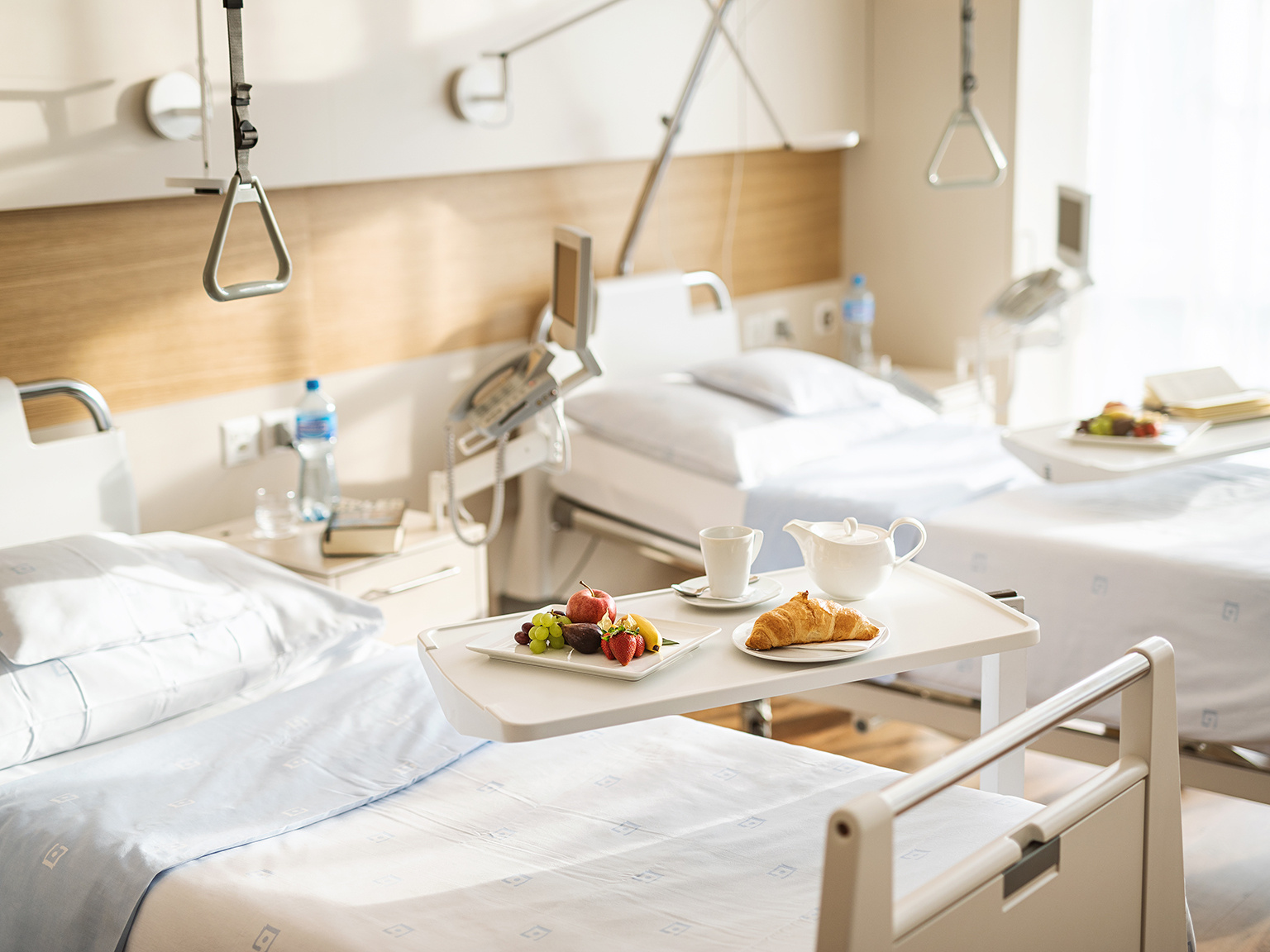 If you have private or semi-private insurance, you can enjoy additional comfort. In a bright single or double room, you benefit from greater privacy.
