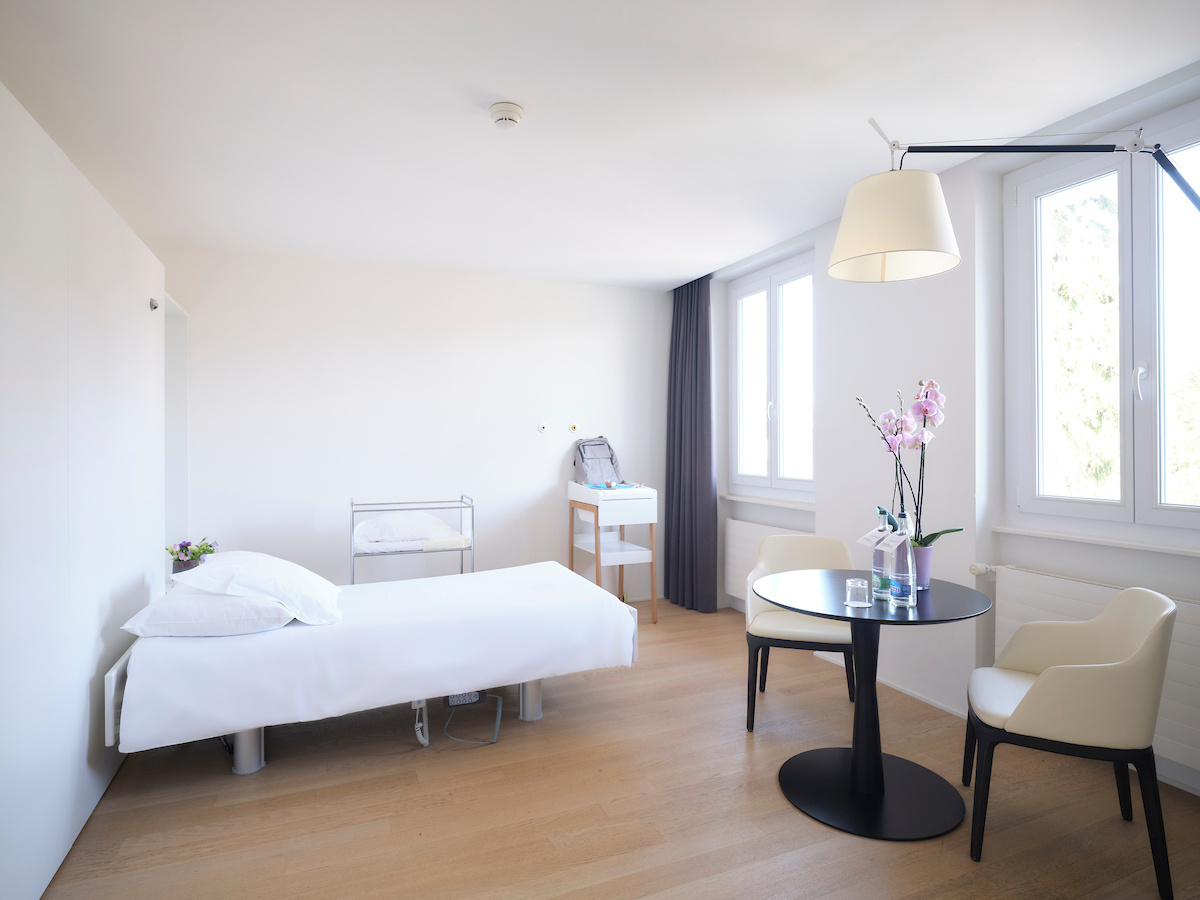 La Clinique des Grangettes dispose de chambres spacieuses et lumineuses et dotées d’un mobilier contemporain; certaines offrant une vue sur le parc. Elles participent à rendre votre séjour plus serein.