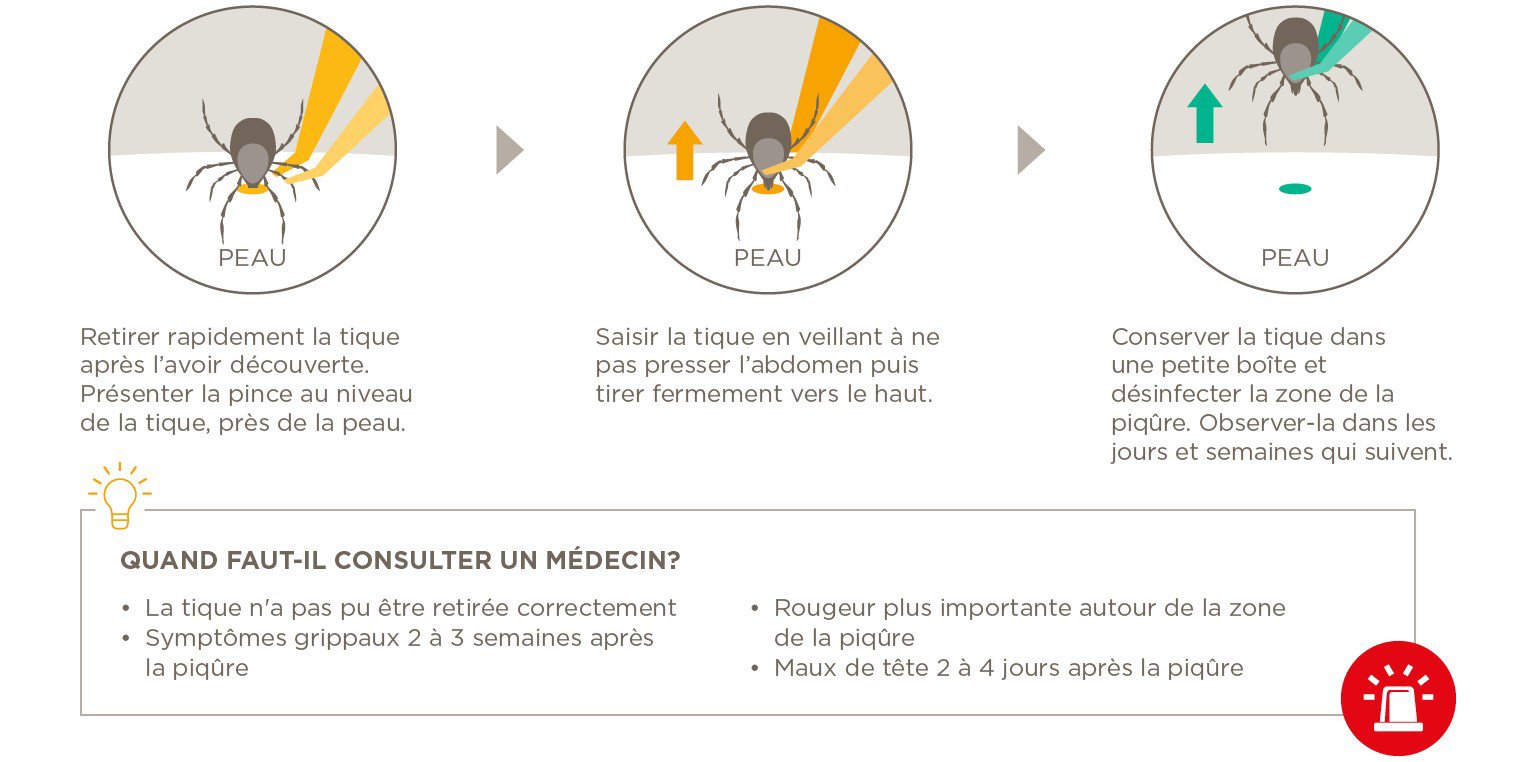La tique doit être retirée soigneusement et le plus vite possible après avoir été découverte: